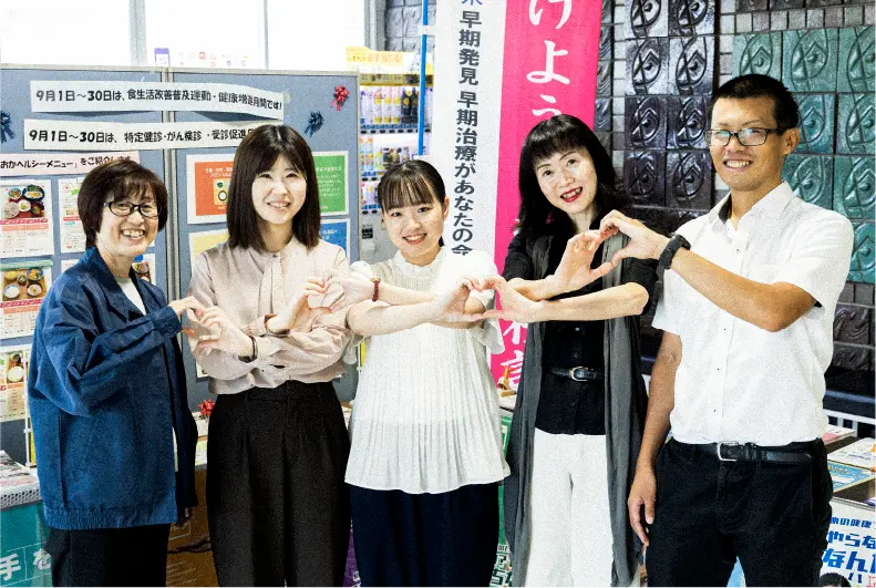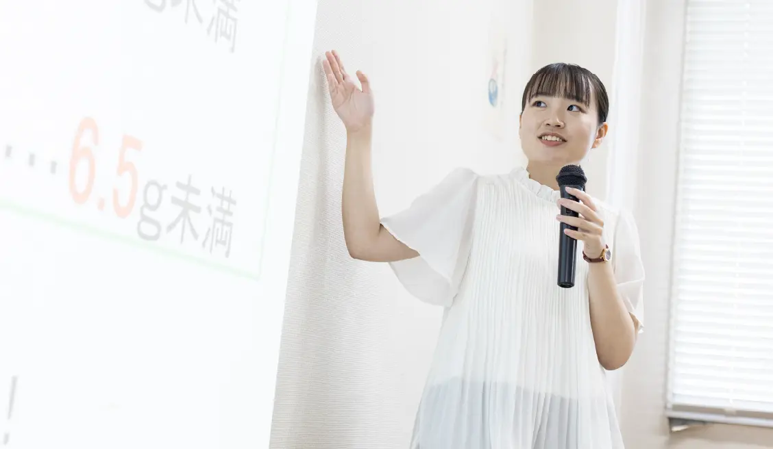 保健師や薬剤師、助産師など、多様な専門性を持つ仲間と「コラボ」しながら仕事ができる点です。例えば、給食施設を訪問し指導する際には薬剤師とチームを組み、私は栄養管理、薬剤師は衛生管理と、それぞれの視点で多角的な指導を行います。また、助産師とは「プレコンセプションケア」※の研修会でコラボし、若い世代の健康づくりを一緒に支援します。異なる専門知識が交わることで、一人では決して生まれなかったアイデアが形になり、地域全体の健康課題にアプローチできるのが最大の魅力です。