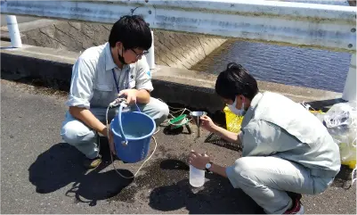 また、環境指導課(係)では、公害・廃棄物関係法令の審査や立入、河川等の水質や大気、土壌の定期的な調査のほか、河川の汚染事故や不法投棄などの突発的な現場対応にも従事します。
