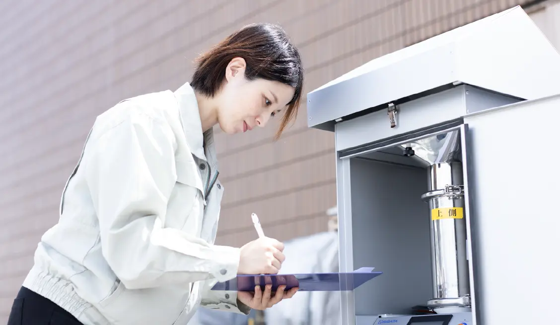 化学職として、事業活動から生じる産業廃棄物※を収集・運搬、処分するための許可申請の審査や、廃棄物の不法投棄現場への立入調査などを行っています。また、水質・大気・土壌汚染といった公害に関する相談対応や調査も重要な業務です。公務員はデスクワーク中心というイメージでしたが、実際は週の半分ほど出張し、調査や採水を行うこともあります。関わる法律も多岐にわたるため、今でも分厚い法律書を片手に、日々学びながら業務に取り組んでいます。